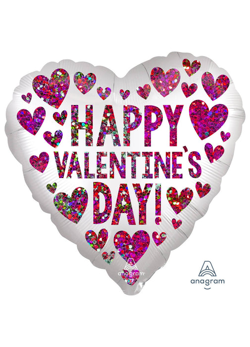 Happy Valentine's Day 18" heart shaped balloon with sequin pattern design and a satin infused finish.