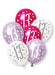 Pack of 6 age 13 Birthday Pink Glitz 12" latex perlized balloons in assorted colours. Printed all over. Supplied deflated and suitable for air or helium inflation.