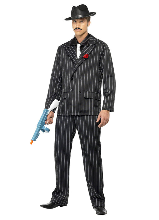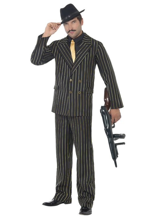 Step back to the twenties with the Gold Pinstripe Gangster. Costume includes black and gold pinstripe suit and black shirt front with attached gold...