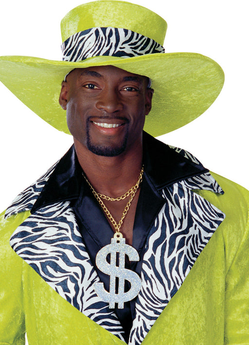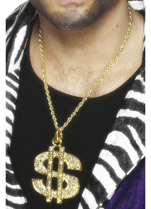 Have the biggest bling in town with this over-the-top silver dollar sign big daddy pimp necklace with gold chain!