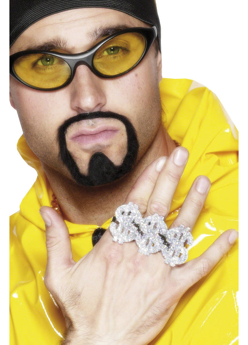Gold metallic colour jumbo ring ideal for pimp or chav style costume. Sold individually.
