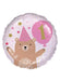 1st birthday girl 17 inch round holographic bear design foil balloon.