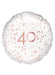 17 inch round rose gold patterned 40th birthday foil balloon.