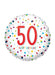 17 inch round Happy 50th Birthday foil balloon with colourful confetti design.