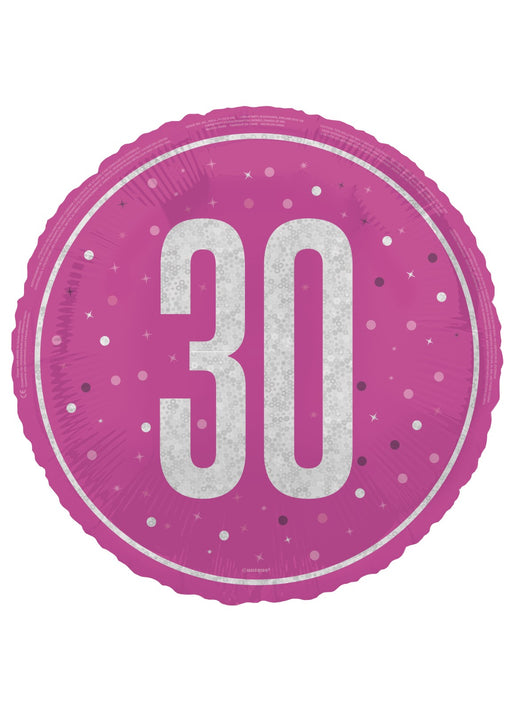 Pink Glitz 30th Birthday 18" circle shaped helium balloon printed both sides. Click & Collect orders: Balloon supplied inflated with helium. ...