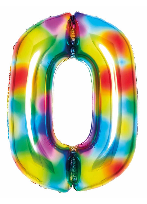 Giant number 0 rainbow splash super shape foil balloon measuring approx. 86 cm (34") in height. Click & Collect orders: Balloon supplied infl...