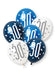 Pack of 6 age 30 Birthday Blue Glitz 12" latex perlized balloons in assorted colours. Printed all over. Supplied deflated and suitable for air or helium inflation.