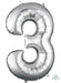 Giant number 3 silver super shape foil balloon measuring approx. 86 cm (34") in height.