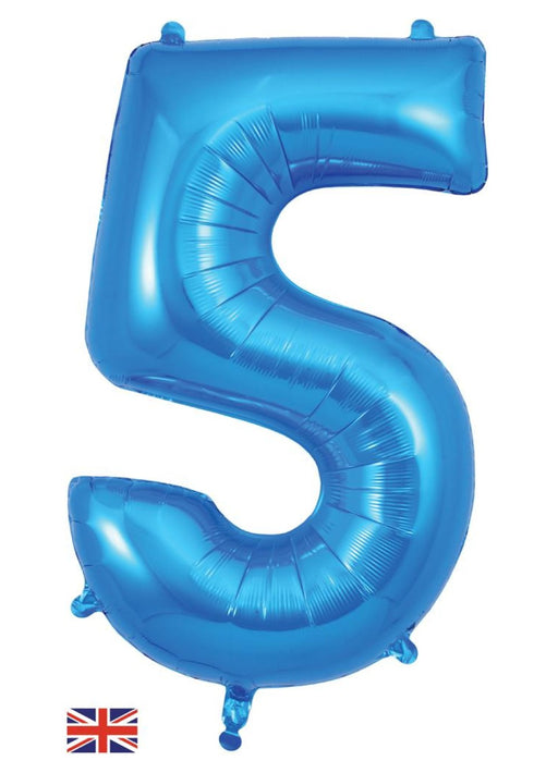 Giant number 5 blue super shape foil balloon measuring approx. 86 cm (34") in height. Click & Collect orders: Balloon supplied inflated with ...