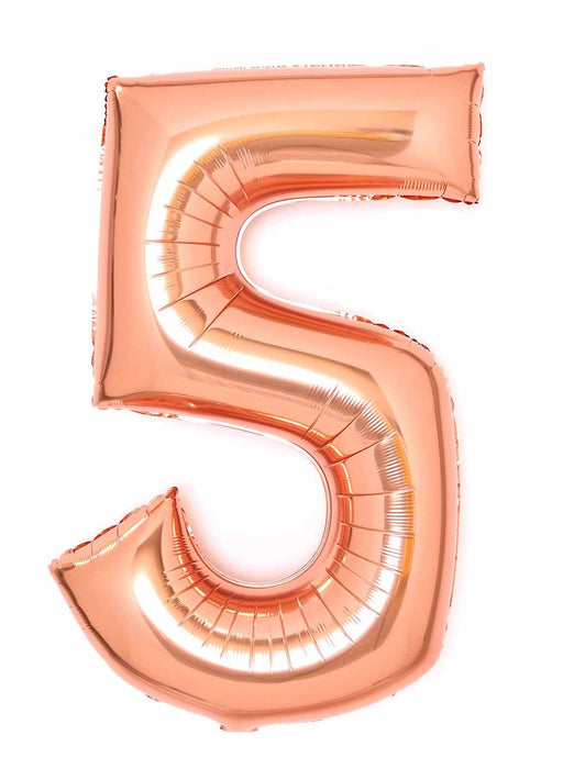 Giant number 5 rose gold super shape foil balloon measuring approx. 86 cm (34") in height. Click & Collect orders: Balloon supplied inflated ...