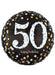 Gold Sparkle 50th birthday holographic foil balloon decorated with spots.