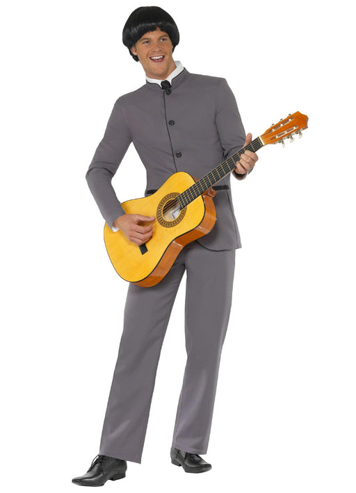 1960's Fab Four iconic The Beatles style costume suit in grey consisting of a pair of elasticated waist trousers with button and zip along with mat...