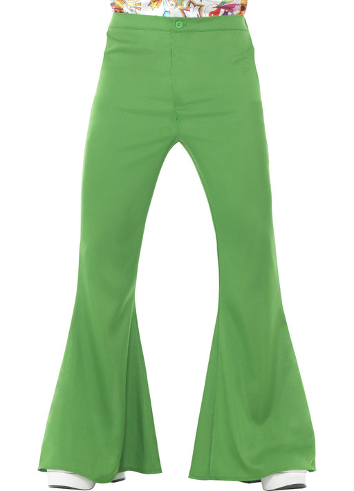 60's themed green flared trousers with elasticated waist and iconic flared trouser leg. Size Chest Waist Inside Leg Medium 38''-40'' 32''-34...