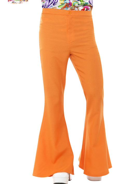 60's themed orange flared trousers with elasticated waist and iconic flared trouser leg. Size Chest Waist Inside Leg Medium 38''-40'' 32''-3...