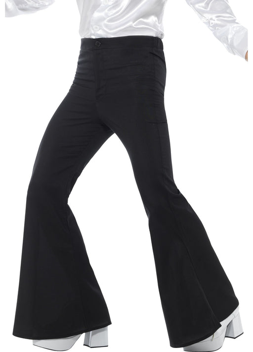 60's themed black flared trousers with elasticated waist and iconic flared trouser leg. Size Chest Waist Inside Leg Medium 38''-40'' 32''-34...