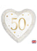 Happy 50th Golden Anniversary heart 18" balloon with gold and white decorative hearts pattern.