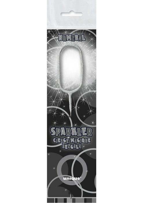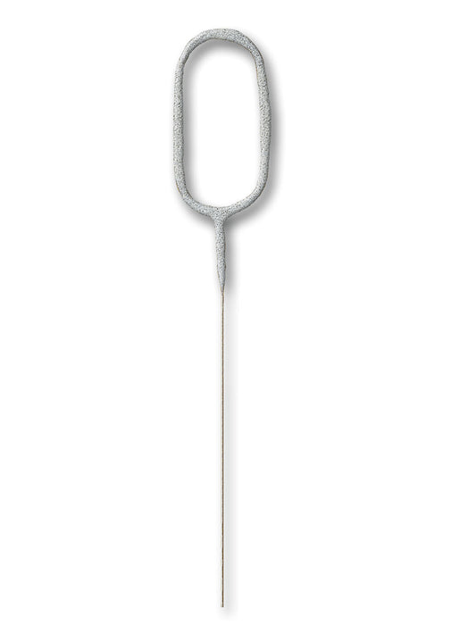 Number 0 silver sparkler candle. Ideal decoration for your birthday cake.