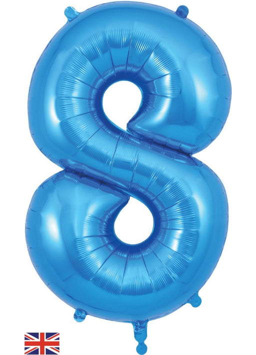 Giant number 8 blue super shape foil balloon measuring approx. 86 cm (34") in height. Click & Collect orders: Balloon supplied inflated with ...
