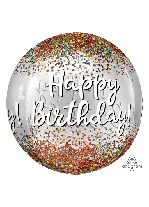 Happy Birthday see-thru sequins design orbz balloon printed all round. Balloon is as round as a beach ball when inflated measuring approximately 3...