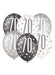 Pack of 6 age 70 Birthday Black Glitz 12" latex pearlized balloons in assorted colours. Printed all over. Supplied deflated and suitable for air or helium inflation.