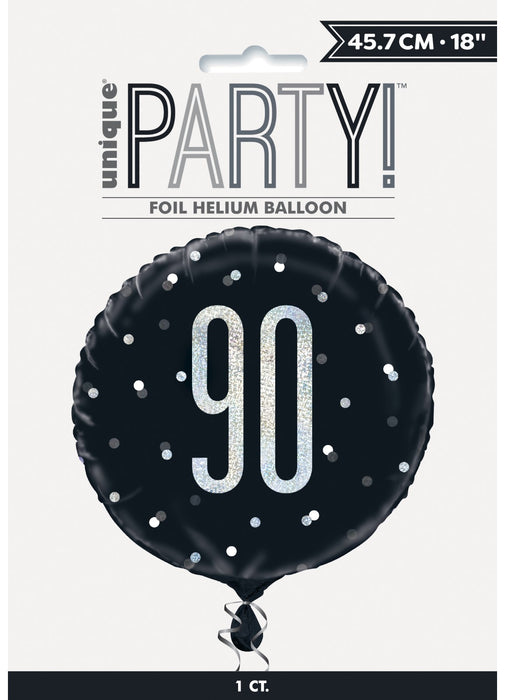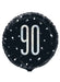 Black Glitz 90th birthday 18" circle shaped helium balloon printed both sides.