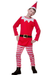 Red Christmas naughty elf costume which comes with top with attached belt, stripped trousers and hat.