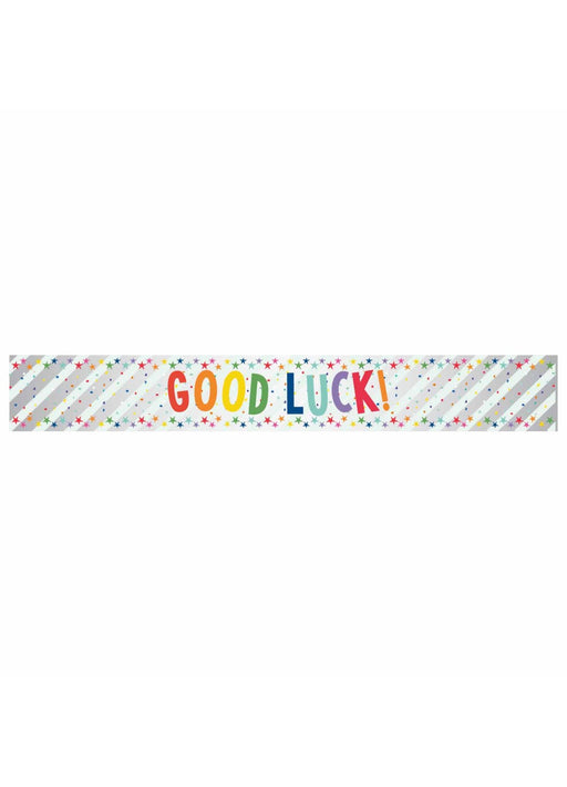 Good Luck foil banner repeated three times with multi-coloured star design measuring 2.7m in length.