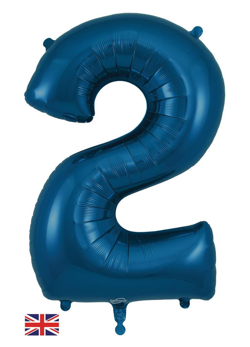 Giant number 2 navy blue super shape foil balloon measuring 34" in height. Click & Collect orders: Balloon supplied inflated with helium. De...