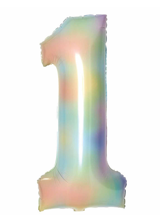 Giant number 1 super shape foil balloon with a pastel rainbow pattern measuring approx. 86 cm (34") in height. Click & Collect orders: Balloo...