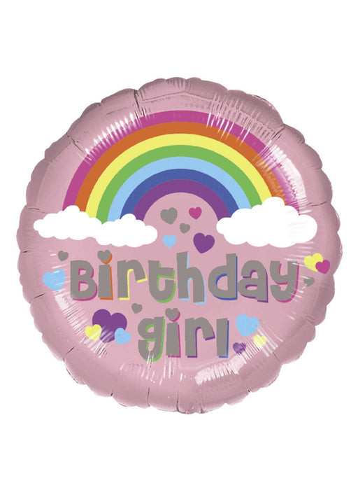 Pink Birthday Girl rainbow design round shaped 17" foil balloon. Click & Collect orders: Balloon supplied inflated with helium. Delivery orde...