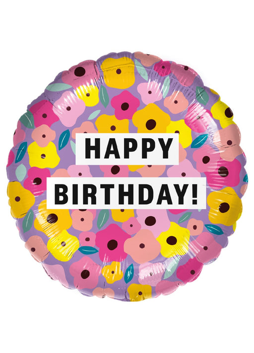 17 inch round Happy Birthday bright floral designed foil balloon. Click & Collect orders: Balloon supplied inflated with helium. Delivery or...