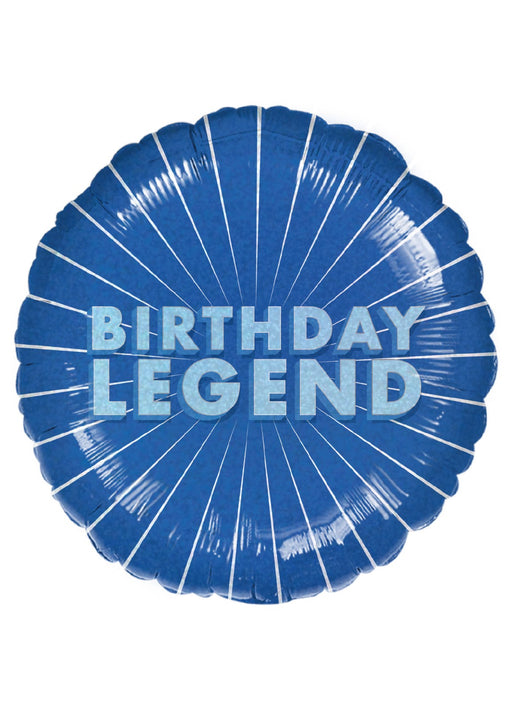 17 inch round blue Birthday Legend foil balloon. Click & Collect orders: Balloon supplied inflated with helium. Delivery orders: Balloon sup...