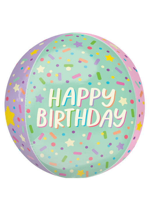 Happy Birthday sprinkles orbz balloon. Balloon is as round as a beach ball when inflated measuring approximately 38cm (15 inches). Click & C...