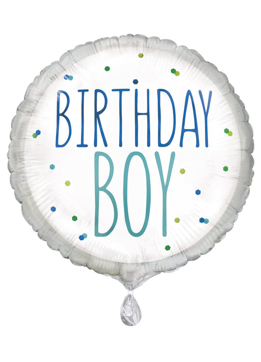 Birthday Boy 18" circle shaped helium balloon printed both sides. Click & Collect orders: Balloon supplied inflated with helium. Delivery ord...