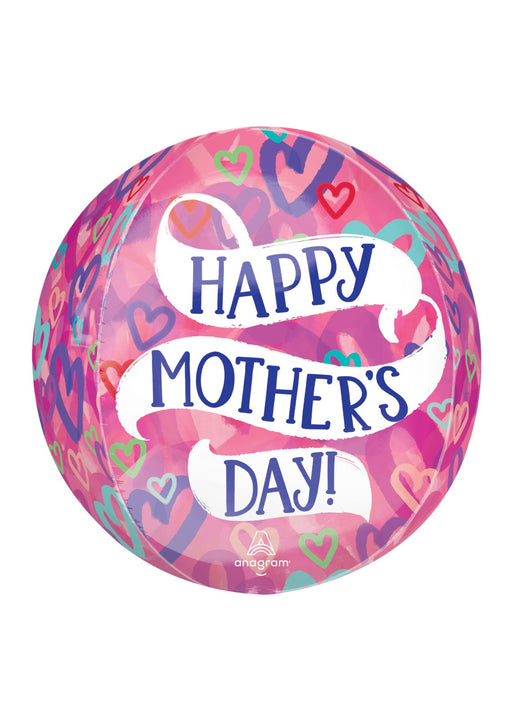 Large round pink layered hearts Happy Mother's Day balloon measuring 38 cm (15") when inflated. Balloon is as round as a beach ball when inflated. ...