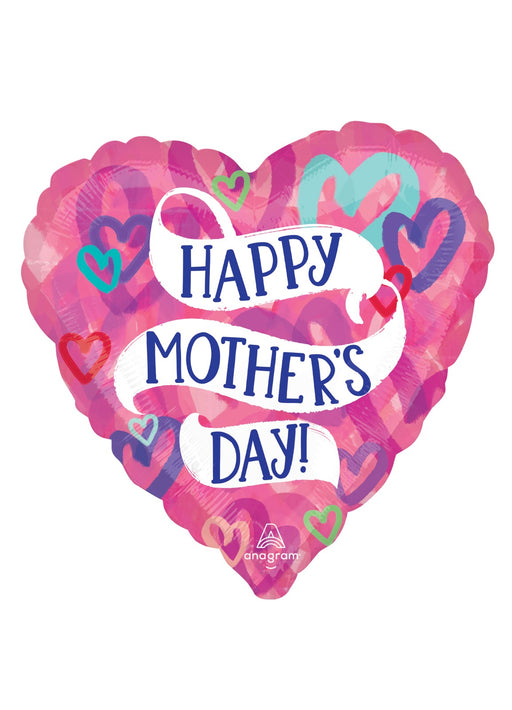 Pink layered hearts design Happy Mother's Day 17" heart shaped foil balloon. Click & Collect orders: Balloon supplied inflated with helium. D...