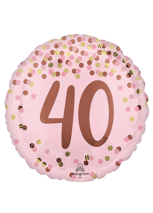 Blush pretty pink age 40 birthday 17" round foil balloon decorated with spots. Click & Collect orders: Balloon supplied inflated with helium....