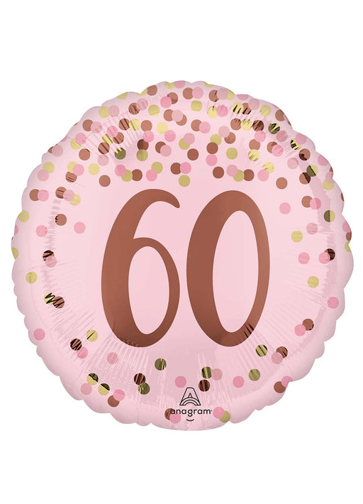 Blush pretty pink age 60 birthday 17" round foil balloon decorated with spots. Click & Collect orders: Balloon supplied inflated with helium....