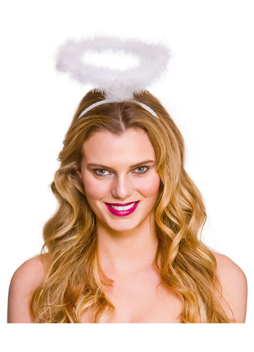 White Angel set consisting of wings with white marabou trim & silver tinsel halo.