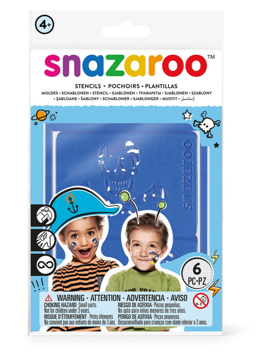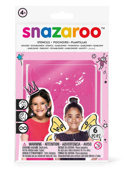 Snazaroo face paint stencil set which includes 6 designs and are easy to use and safe for children. A self-adhesive backing keeps them in place and...