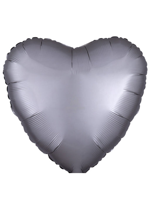 Satin matte finish silver coloured 17" heart shaped foil balloon. Supplied deflated and suitable for helium inflation only.