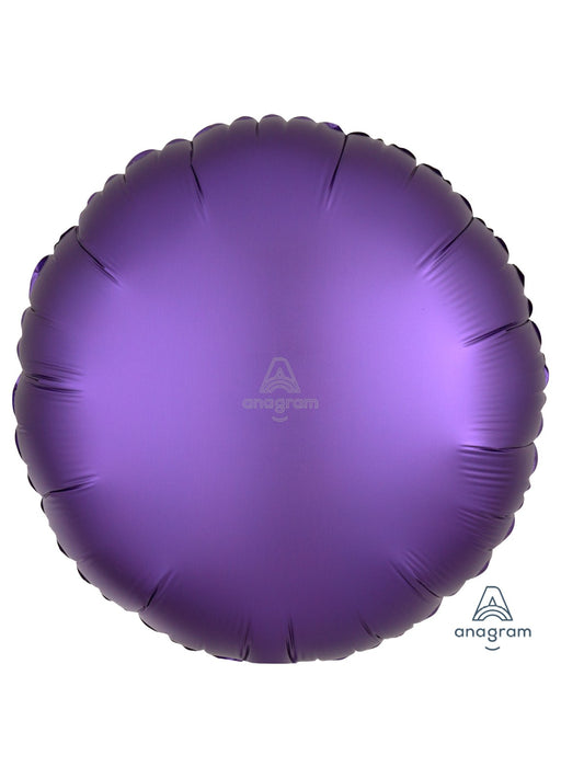 Satin matte finish purple coloured 17" round shaped foil balloon. Supplied deflated and suitable for helium inflation only.