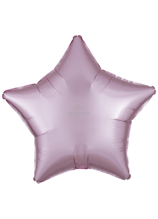 Shimmering matte metallic finish pastel pink coloured star shaped foil balloon. Supplied deflated and suitable for helium inflation only.