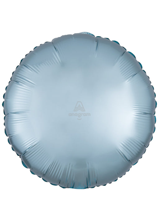 Satin matte finish pastel blue coloured 17" round shaped foil balloon. Supplied deflated and suitable for helium inflation only.