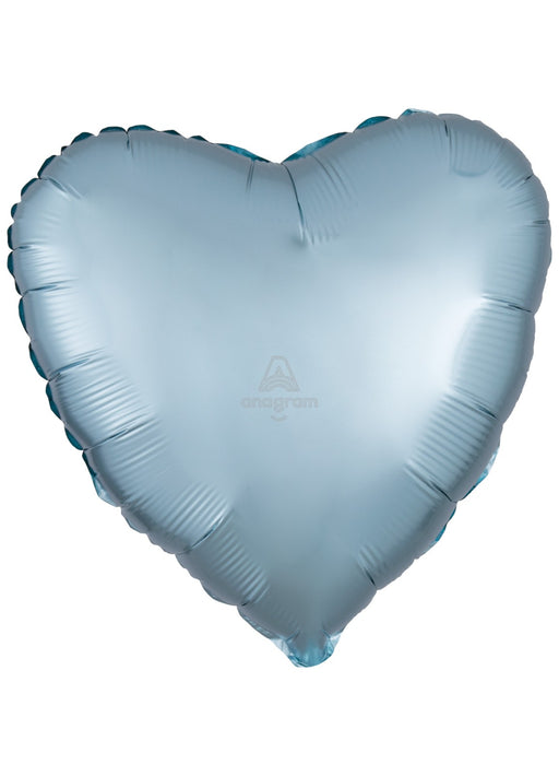 Satin matte finish pastel blue coloured 17" heart shaped foil balloon. Supplied deflated and suitable for helium inflation only.