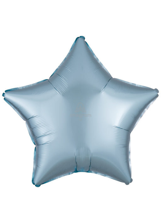 Shimmering matte metallic finish pastel blue coloured star shaped foil balloon. Supplied deflated and suitable for helium inflation only.