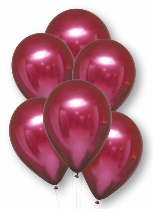 Pack of 6 helium quality 11" pomegranate satin latex balloons. Price does not include helium inflation which is available in store at an extra cost.