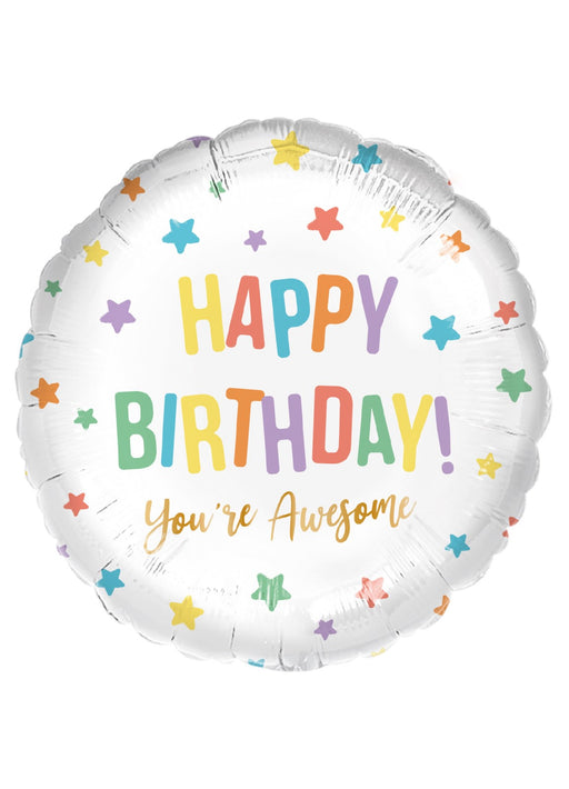 Happy Birthday You're Awesome 17" round foil balloon. Click & Collect orders: Balloon supplied inflated with helium. Delivery orders: Balloo...