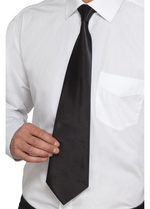 Long deluxe Halloween witch's black cape with neck tie jewel. One size fits most. 100% polyester.