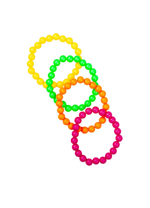 80's style Neon bracelets. Each pack containing 1 green, 1 yellow, 1 pink and 1 orange bracelet.